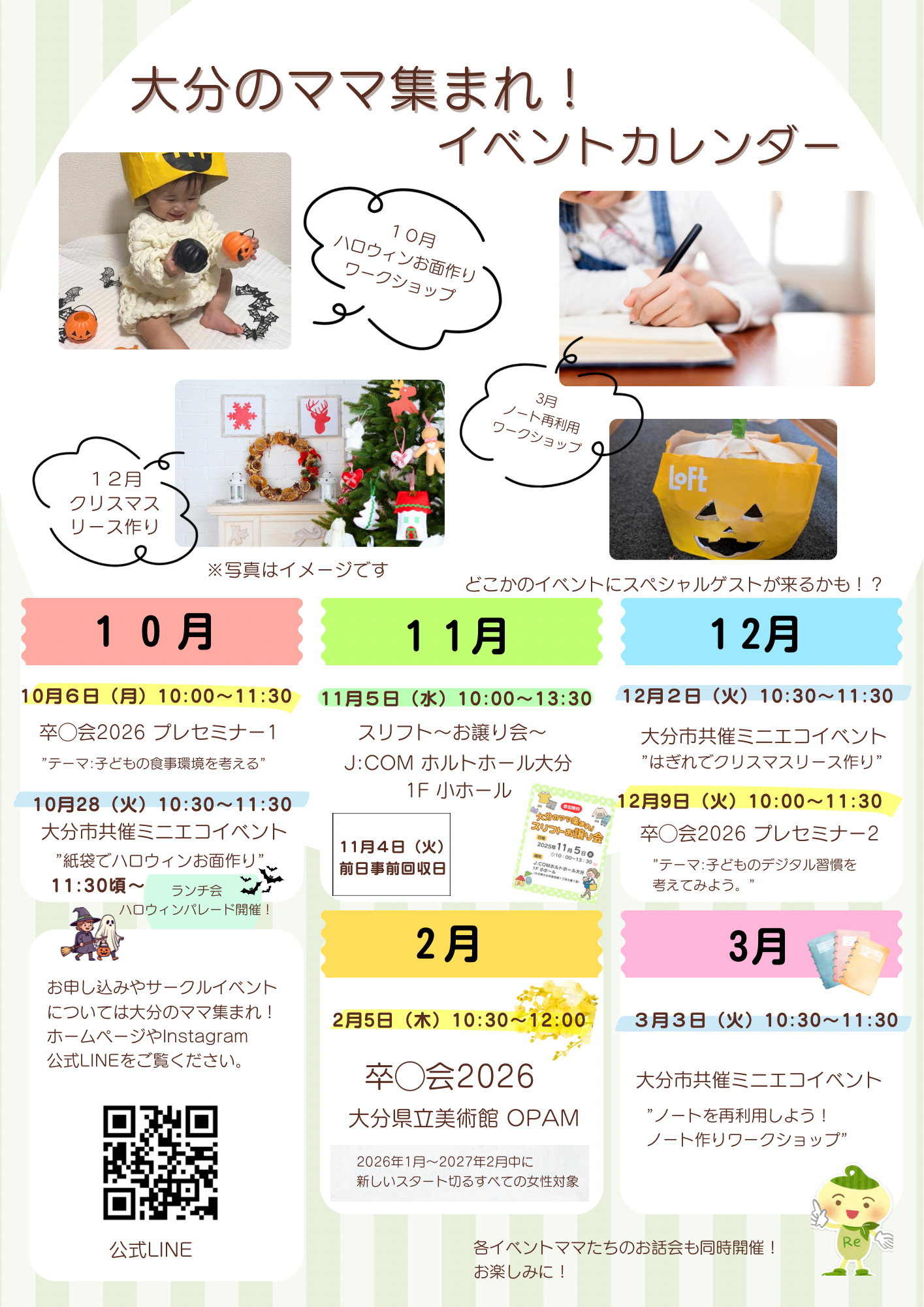 *企画参加による、怪我や事故、トラブルについては、大分市、大分のママ集まれ!及びスタッフ、並びに合同会社co-e connectは一切の責任を負いかねますことをご了承ください。