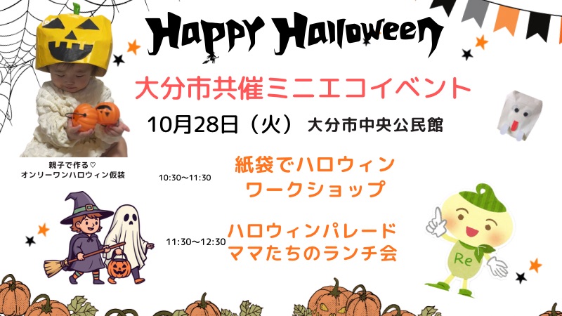 10月28日(火)開催大分市ミニエコイベント第三弾!皆さんのご自宅にある紙袋でハロウィンお面ワークショップのご案内です。