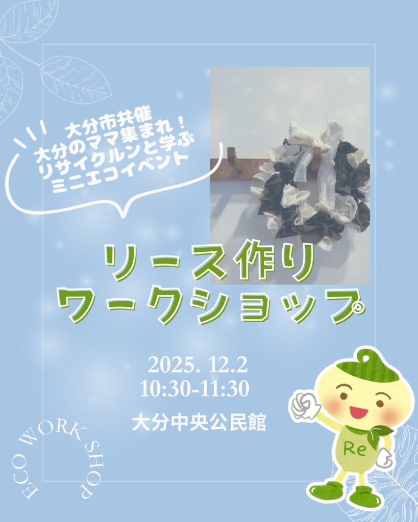 12月2日(火)開催大分市ミニエコイベント第4弾!端切れでクリスマスリースワークショップのご案内です。