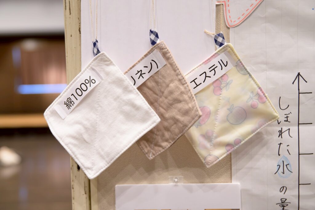 大分のママ集まれ!独自の環境プロジェクト、「こぞうきんプロジェクト」の展示を行いました。このプロジェクトは大分のママ集まれ!の活動の1つである、人に譲れない状態の子どもの古着(Tシャツ)から雑巾を作るというプロジェクトです。今年は“なぜ私たちが綿100%にこだわるのか“と題して、こぞうきん展示を行いました。