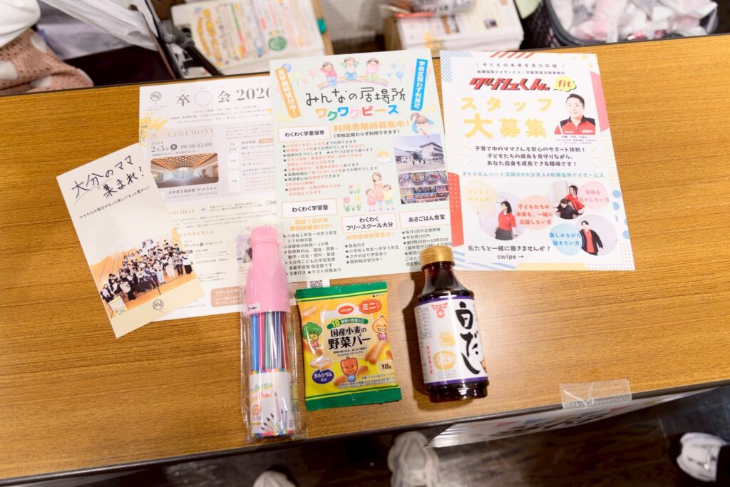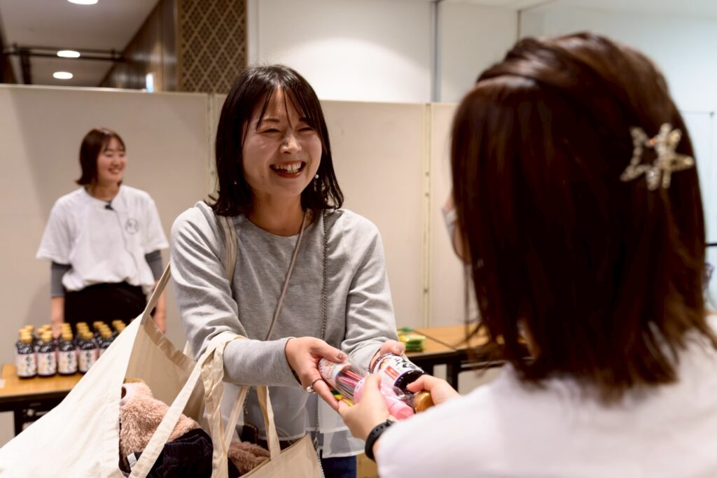 出口付近では、ご来場プレゼントとして、ご協賛企業様からご提供いただいたお土産をスタッフがお渡しさせていただきました。お一人お一人に感謝の気持ちを伝えることができ、私たちスタッフも心温まる時間でした。